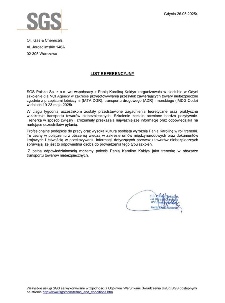 Wraz z wykonywaniem powierzonych mi prac, skrupulatnie realizuję i rozwijam cel, który wyznaczyłam przed rozpoczęciem działalności z zakresu problematyki magazynowania i przewozu towarów niebezpiecznych: