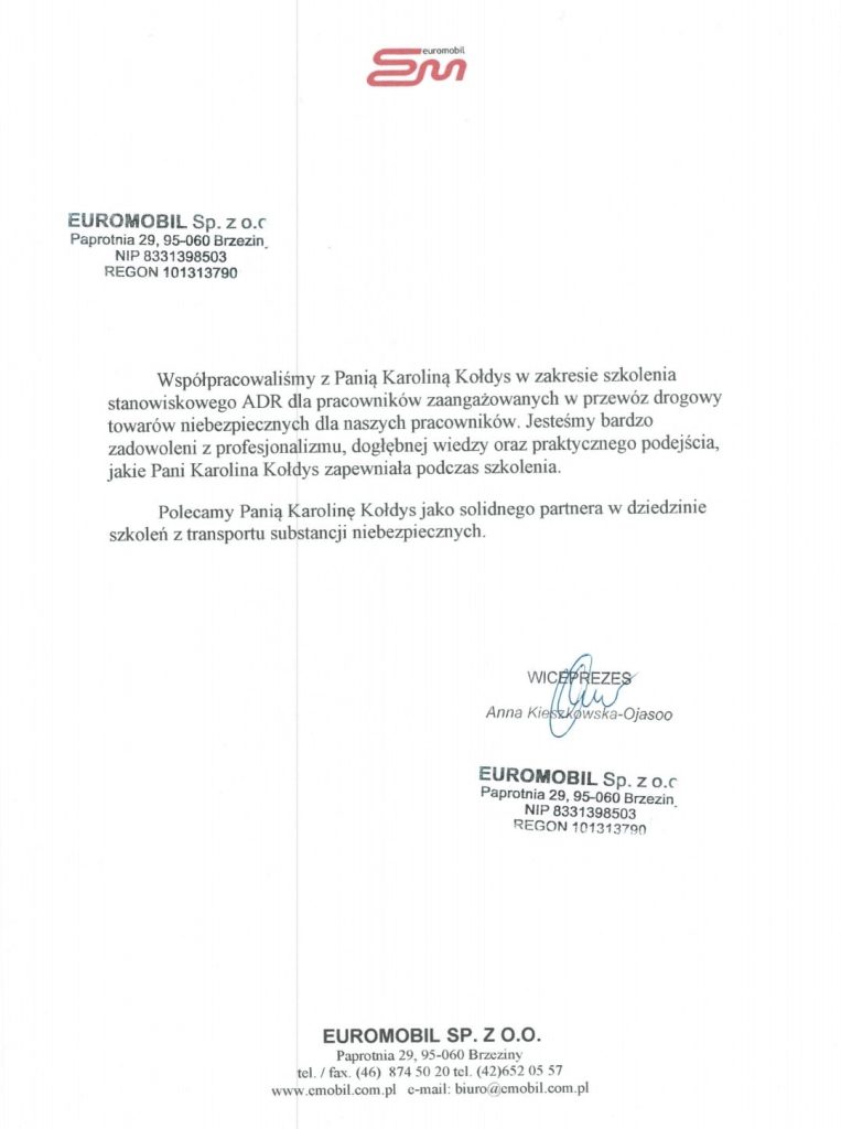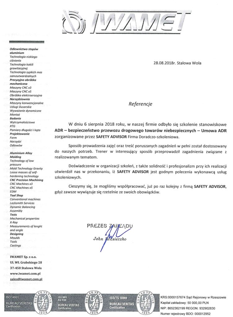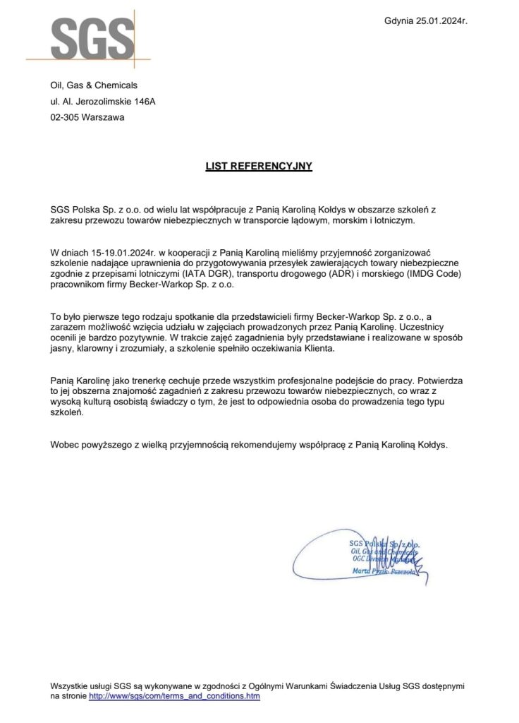 Wraz z wykonywaniem powierzonych mi prac, skrupulatnie realizuję i rozwijam cel, który wyznaczyłam przed rozpoczęciem działalności z zakresu problematyki magazynowania i przewozu towarów niebezpiecznych: