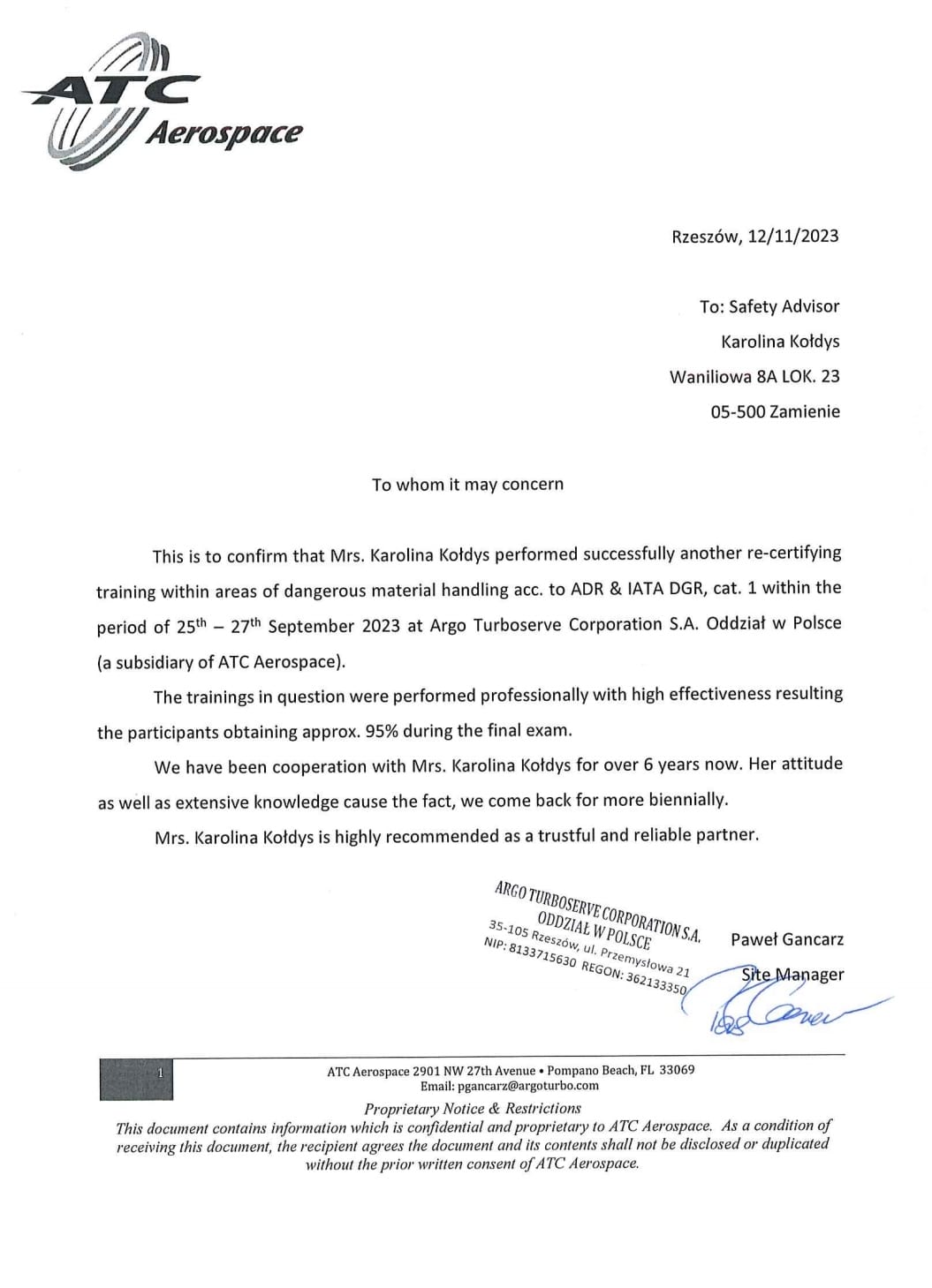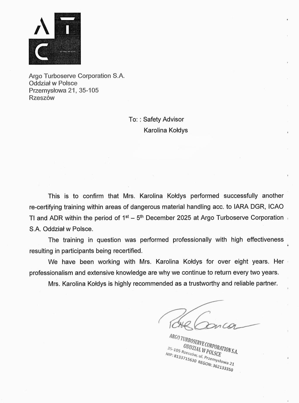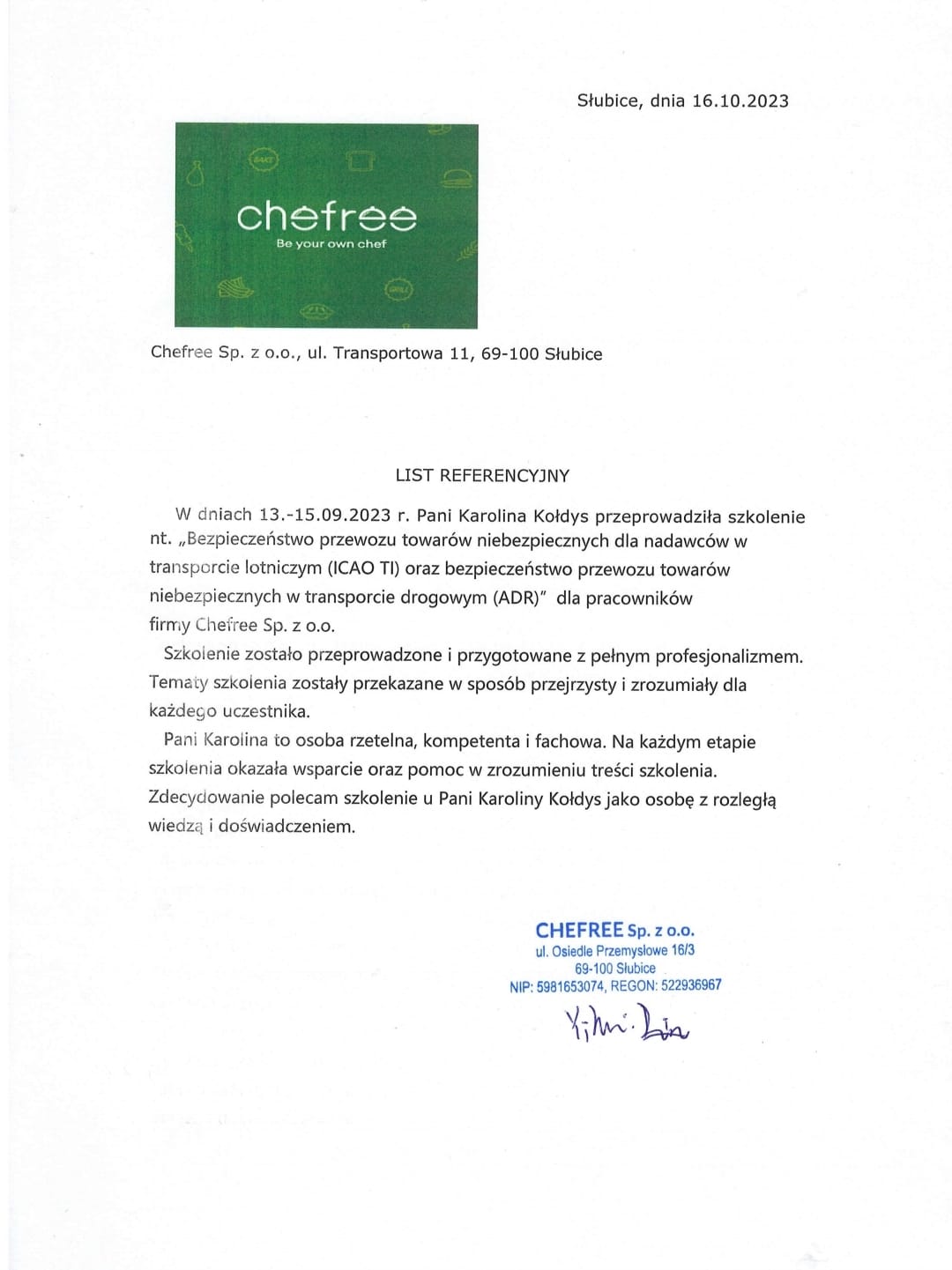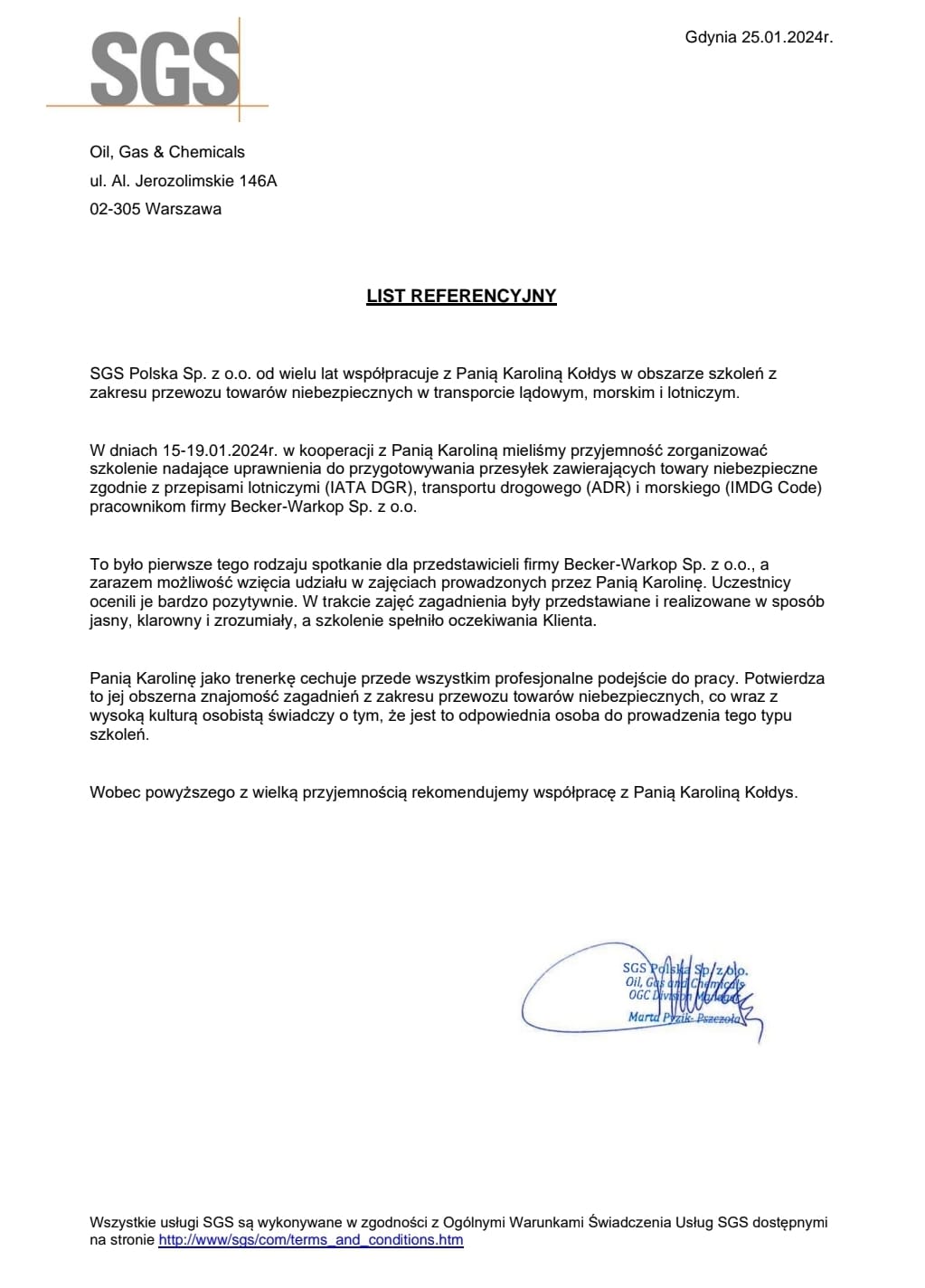 Wraz z wykonywaniem powierzonych mi prac, skrupulatnie realizuję i rozwijam cel, który wyznaczyłam przed rozpoczęciem działalności z zakresu problematyki magazynowania i przewozu towarów niebezpiecznych: