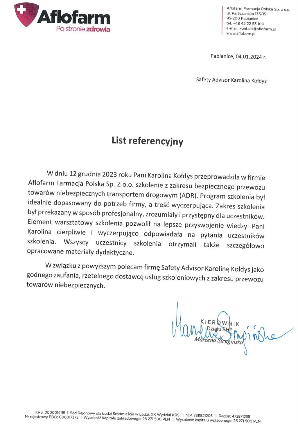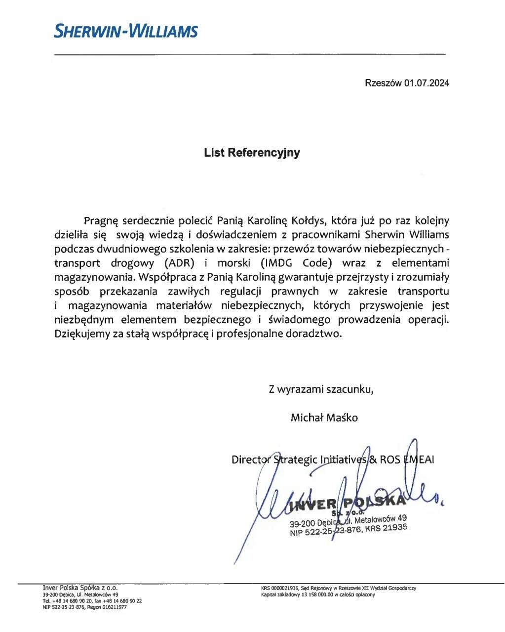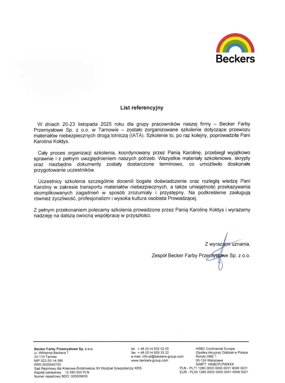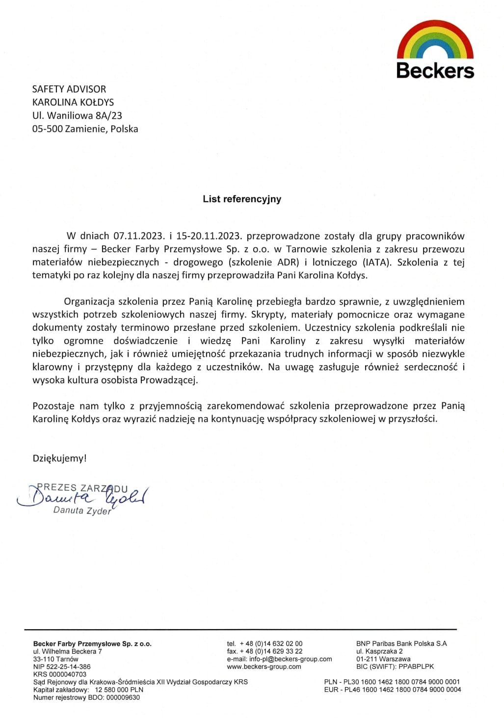 Pozostawiam to Państwa ocenie, przedstawiając poniżej wybrane listy referencyjne od ponad 120 firm z wielu sektorów gospodarki. Stanowią one część grona ponad 350 przedsiębiorstw, z którymi miałam przyjemność współpracować, a jednocześnie potwierdzają skuteczność moich działań w różnych obszarach rynku.