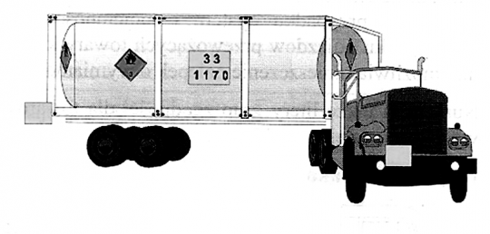 Pojazd przewożący jeden towar niebezpieczny w cysternie - przykład oznakowania (nr 1)