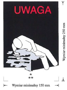 Znak dla materiałów zagrażających środowisku powinien być umieszczany w taki sam sposób jak nalepki ostrzegawcze.