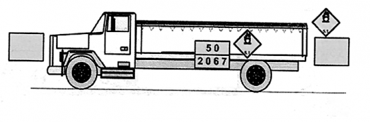 Przewóz materiału niebezpiecznego luzem w pojeździe – przykład oznakowania (nr 1)