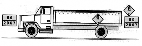 Jednostki transportowe w których przewożony jest jeden towar niebezpieczny, nieprzewożące innych materiałów, mogą być zaopatrzone w tablice barwy pomarańczowej z numerem rozpoznawczym zagrożenia i numerem UN, umieszczone z przodu i z tyłu jednostki transportowej, obie prostopadle do osi podłużnej tej jednostki (5.3.2.1.6 Umowa ADR).